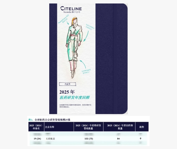 全球第19位!石藥集團全球醫(yī)藥企業(yè)研發(fā)管線規(guī)模排名上升!
