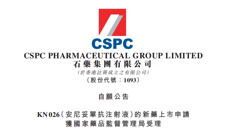 石藥集團(tuán)KN026(安尼妥單抗注射液)的新藥上市申請獲受理