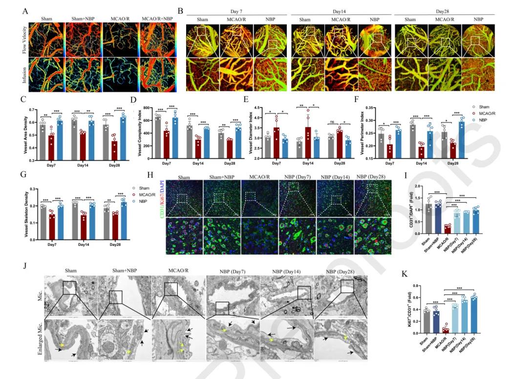 結(jié)果一:建立大鼠腦卒中模型給予NBP治療,結(jié)果顯示NBP促進(jìn)卒中后腦血流和新生血管形成。