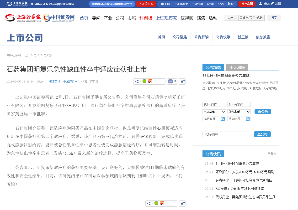 下一篇:石藥集團(tuán):附屬公司注射用重組人TNK組織型纖溶酶原激活劑急性缺血性卒中適應(yīng)癥獲上市批準(zhǔn)